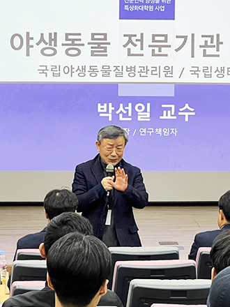 야생동물 질병 전문 인력 양성 사업은 이러한 불확실성을 해소하고, 원-헬스(one health) 기반의 지속 가능한 생태계를 유지하는 초석입니다. 우리가 풀어야 할 과제가 많기에 창의성이 넘치는 학생 여러분의 많은 관심과 도전을 기대합니다. 강원대학교 야생동물구조센터는 전국을 선도하는 기관으로 더욱 도약하겠습니다.